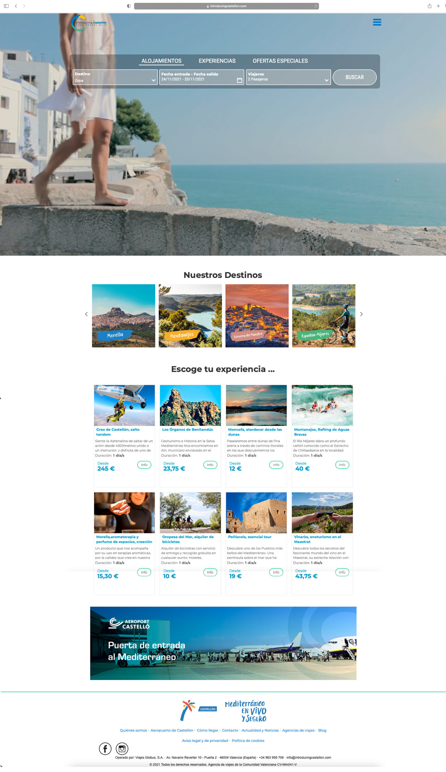 Para Introducing Castellón, iniciativa empresarial de Club de Producto Introducing Castellón y operado por Viajes Globus S.A, hemos llevado a cabo el restyling completo de la página web, integrando el motor de reservas con múltiples conexiones XML, buscador de actividades y paquetes turísticos.